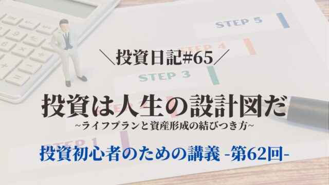 投資日記 投資初心者のための講義 ~ 第62回 ~『ライフプランと投資戦略|人生設計に“資産形成”を組み込む方法』【投資日記#65】 2025年9月12日 michael https://michaelblog7.com/wp-content/uploads/2021/06/10E6BCFF-62DF-442E-9A39-ED2A705FB140_Original.jpg 忍野マイケルの副業日記 📘投資初心者のための講義シリーズ このシリーズでは、投資をゼロから学びたい方に向けて「かんたん …