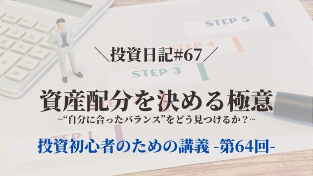 投資日記 投資初心者のための講義 ~ 第64回 ~『資産配分を決める極意|“自分に合ったバランス”をどう見つけるか?』【投資日記#67】 2025年9月16日 michael https://michaelblog7.com/wp-content/uploads/2021/06/10E6BCFF-62DF-442E-9A39-ED2A705FB140_Original.jpg 忍野マイケルの副業日記 📘投資初心者のための講義シリーズ このシリーズでは、投資をゼロから学びたい方に向けて「かんたん …