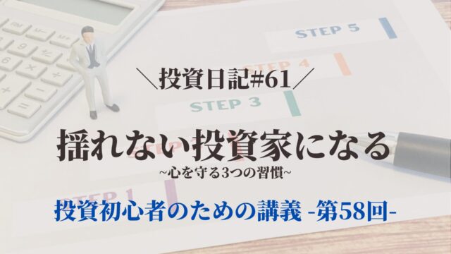 投資日記 投資初心者のための講義 ~ 第58回 ~『投資家の心を守る習慣|揺れないメンタルを育てる思考法』【投資日記#61】 2025年9月8日 michael https://michaelblog7.com/wp-content/uploads/2021/06/10E6BCFF-62DF-442E-9A39-ED2A705FB140_Original.jpg 忍野マイケルの副業日記 📘投資初心者のための講義シリーズ このシリーズでは、投資をゼロから学びたい方に向けて「かんたん …