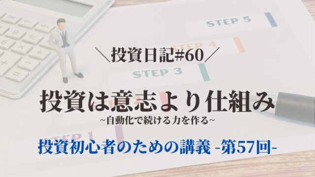 投資日記 投資初心者のための講義 ~ 第57回 ~『投資を自動化する仕組み作り|“やめない仕組み”で未来を守る』【投資日記#60】 2025年9月7日 michael https://michaelblog7.com/wp-content/uploads/2021/06/10E6BCFF-62DF-442E-9A39-ED2A705FB140_Original.jpg 忍野マイケルの副業日記 📘投資初心者のための講義シリーズ このシリーズでは、投資をゼロから学びたい方に向けて「かんたん …